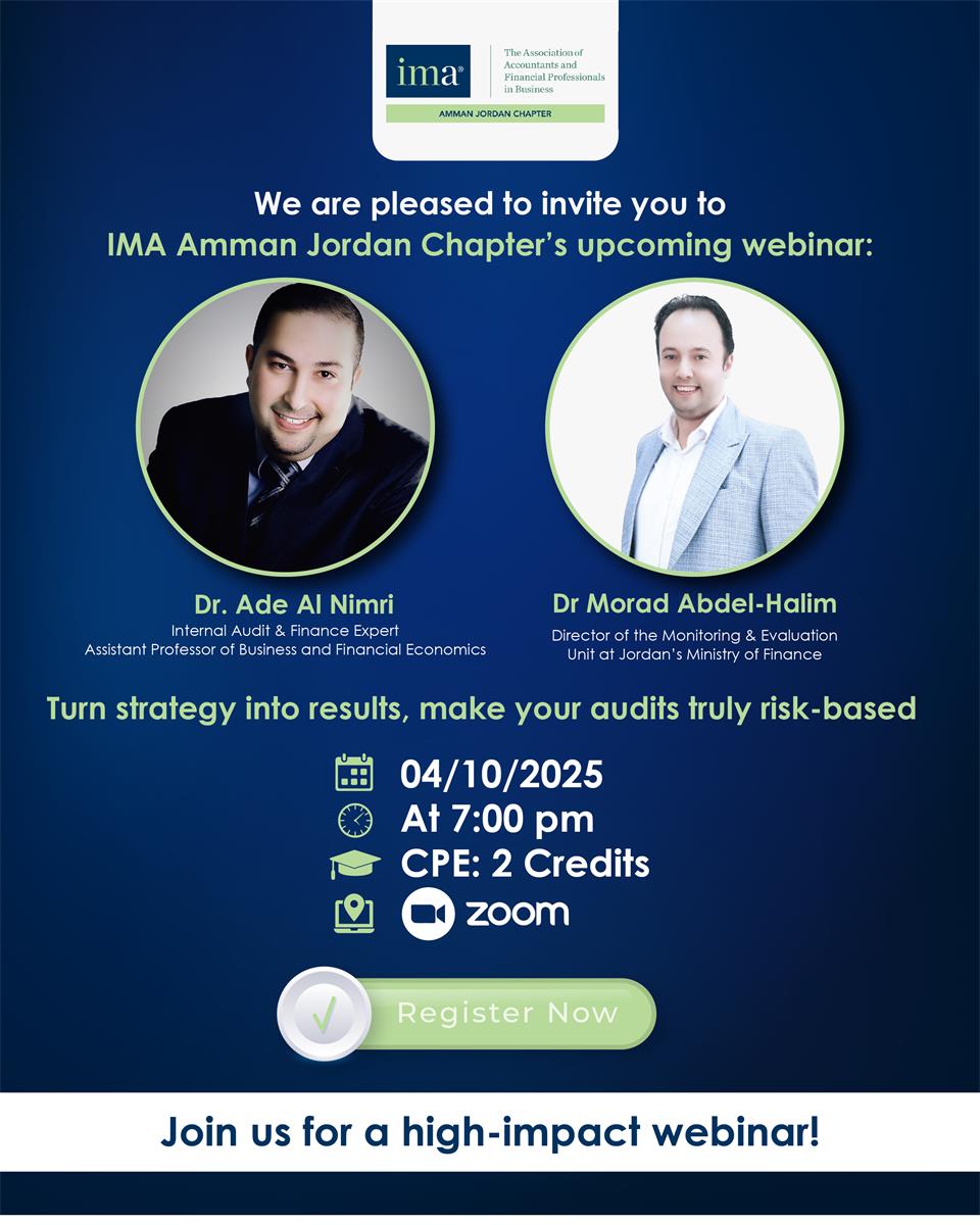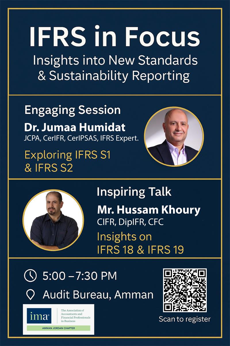 The IMA Amman Chapter is thrilled to invite you to a special in-person workshop bringing together two brilliant minds in the world of accounting and financial reporting. 📚💼
